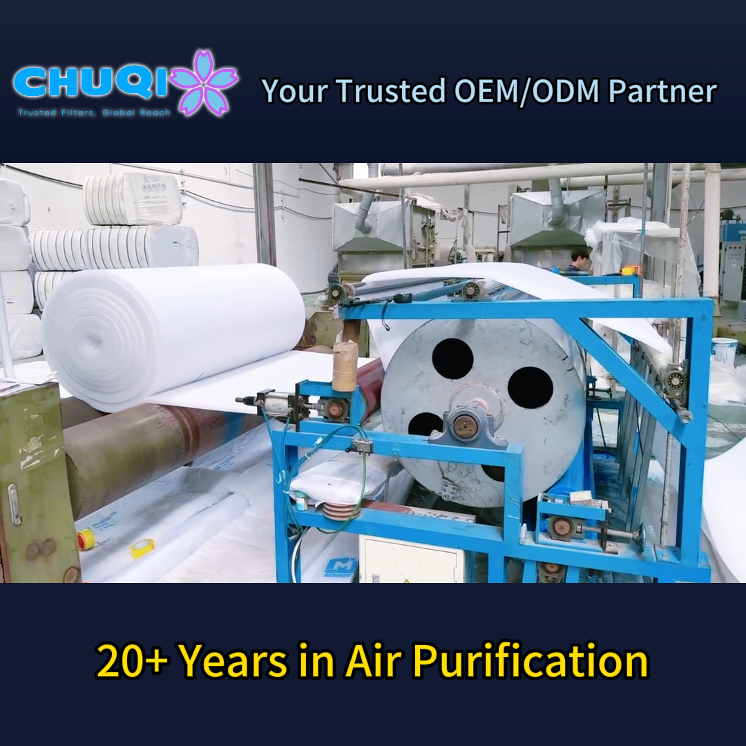At the core of our manufacturing process is a specialized 3D Glue Dipping technology that sets us apart from standard suppliers. Unlike surface-tacky filters, Chuqi ensures every single fiber within the diffusion media is fully impregnated with high-quality resin. This deep-bed adhesive coverage provides extreme dust capture throughout the entire 24mm thickness, effectively trapping sub-micron particles and preventing “orange peel” or surface defects in high-end automotive and industrial painting applications.